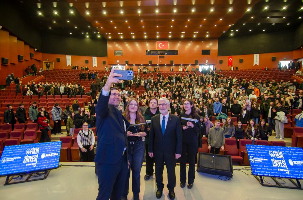 Rektörlüğümüz öncülüğünde ilk kez düzenlenen “Bir Fikir, Bir Gelecek” temalı Fikir Zirvesi’nin ilk konuğu ROKETSAN Genel Müdürü Murat İkinci oldu. Program, öğrencileri alanında uzman isimlerle bir araya getirerek kariyer planlamalarına katkı sunmak ve teknoloji ile inovasyon alanında farkındalık oluşturmak amacıyla düzenlendi.